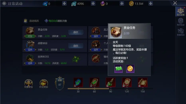 伊瑟拉发布的赏金任务,首日即可开启该玩法,奖励丰厚,每日必做,是经验和金币的重要来源!经验提升等级,金币用于炼金,战力不就来了嘛。
