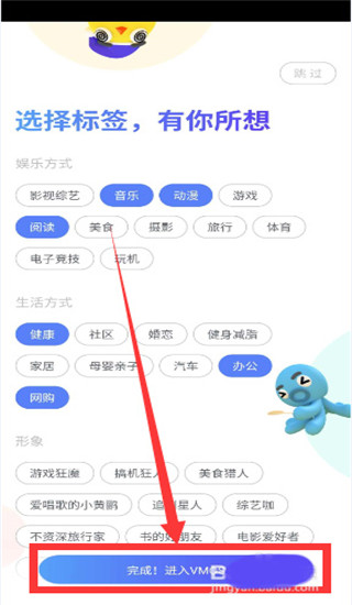 4、接着进入选择标签界面,有娱乐方式、生活方式和形象