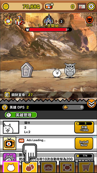 4、升级完成之后,我们的猫咪就会获得属性上的增长,相应的英雄DPS也会增加,接着我们再点击第二个图标。