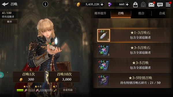 当然,这只是其中一种方法。前期也可以配合游戏中的新手任务,来完成快速升级。根据每一个任务的要求,完成之后就会获得大量的经验。接下来,则是游戏中比较重要的追随者获得办法。在刚开始进行游戏的时候,系统会给予两个追随者。玩家可使用主界面的召唤功能,来获取更多追随者。