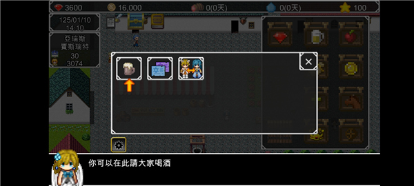 4、购买完成之后,我们还需要去酒馆,点击苹果前方的啤酒图标进入,在这里你可以请大家喝酒;