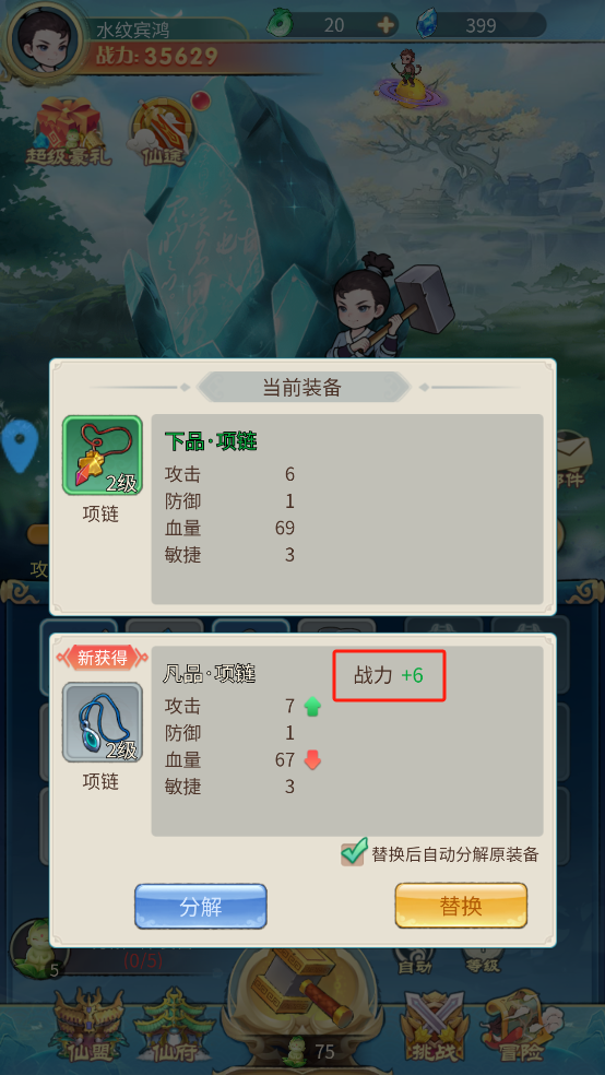 2、获得装备之后可以穿戴上,以此来提高角色的战斗力