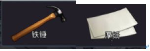 锤子,如果做团扇可以摸布+扇子,有丝袜就多摸张纸,如果没有丝袜就在这里摸个拖鞋做高跟。在这里合成钢弓,阻刃or刀鞘。