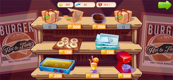 5、随着后面关卡难度的提升,我们也要开始升级厨具和食品;
