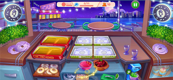 7、我们在回到游戏中就可以看到所有的厨具和食品都得到了提升,这样制作起来也会快很多;