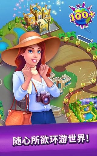 2、完成匹配,修复建筑,探索恢复上百个城市!转转地球仪,选择目的地,您就能轻松出发了。