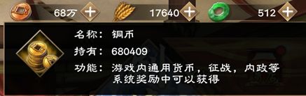 游戏后期,比如50级以后,节奏放缓,推荐使用内政获取铜币