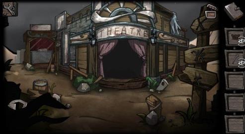 16、点击街尾处的路牌来到这条街道一家剧院的大门,再次点击右侧标牌。