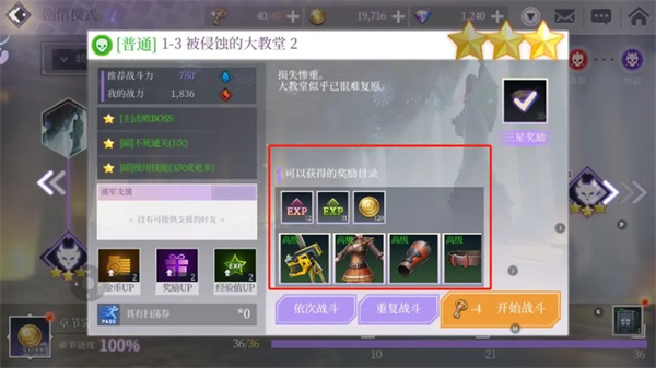 特殊标签的关卡有三种:EXP、GOLD、ITEM,分别对应的是经验关卡、金币关卡、物品关卡,在进入关卡前还可以再使用BUFF道具(如经验值增加券等),关卡结算时也可以获得到更多呢(划重点~)