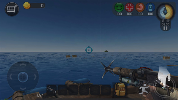 2、海上有各种资源,对准目标,长按右侧射击按钮,将物品拉回来;