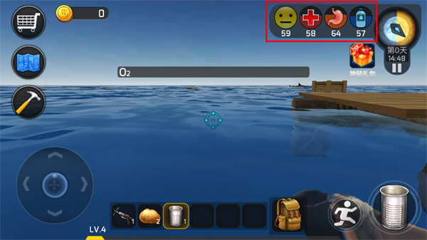 3、在游戏的上方是你的各种状态,你需要保持自己的健康值;