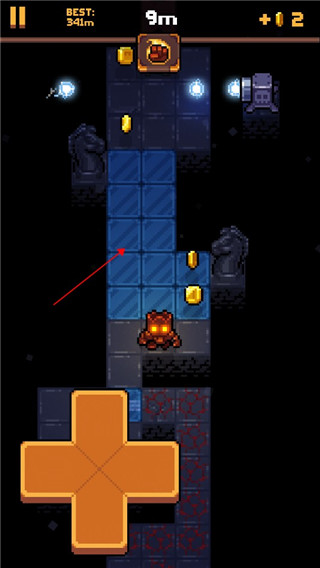 这款游戏是一个像素风格的地牢探险手游,玩起来挺有意思的。你需要操控角色在一个地牢里不断探索,想办法找到出口逃出去。游戏里有很多障碍和陷阱,比如脚下突然消失的冰块地形,还有各种怪物,特别考验反应力和手速。每次失败了可以用金币复活,但要记得金币也是用来升级装备和解锁新技能的重要资源。