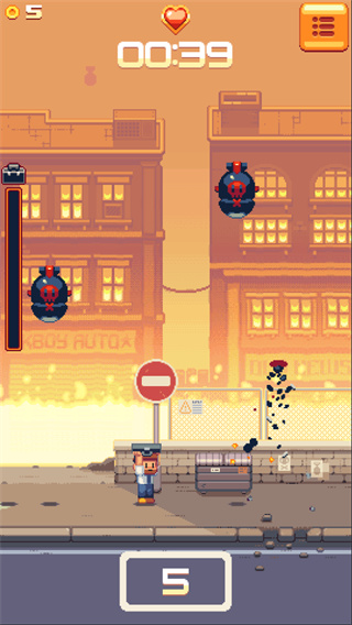 终极公文包是一款以躲避炸弹为主要玩法的休闲手游。游戏画风是经典的像素风格,讲述了一个上班族大叔用公文包挡炸弹的荒诞故事。玩家需要在末日般的场景中左右闪避从天而降的炸弹,并通过收集能量为公文包蓄能。游戏中还有多个特色角色可以解锁,每个角色都有独特的技能,比如女警开枪打掉部分炸弹,流浪汉用冲锋枪反击等。