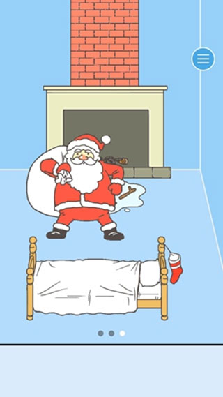 6、然后我们来到房间左侧,再回到房间右侧,圣诞老人就会将钥匙丢在床头的袜子里,我们点击即可获得钥匙,然后用钥匙打开大门就能逃离了。