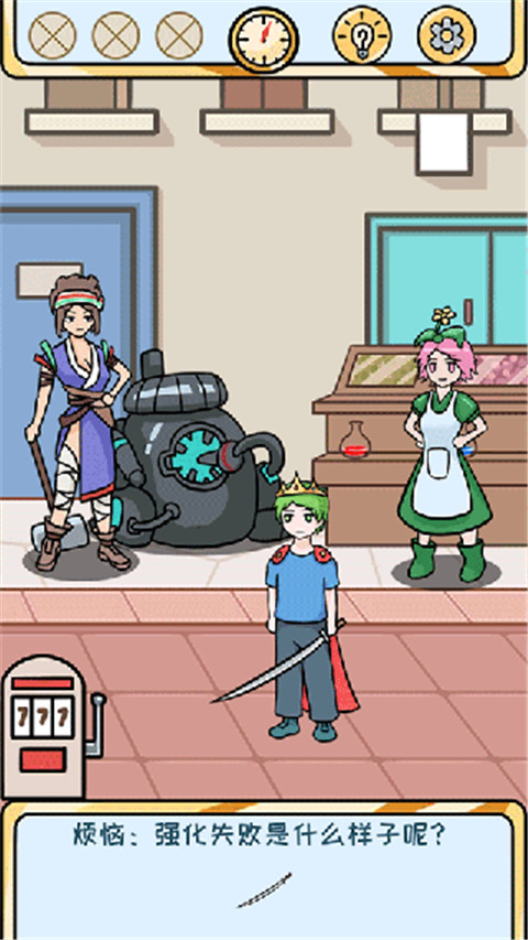 ①点左下角的机器,得到超级黑钻,把超级黑钻给主角使用,点右边的药剂商人,把商店界面往上拉,选择购买装备破坏药剂,点左边的强化师,把武器放进左边的框里,把装备破坏药剂放进中间的小框内,点开始
