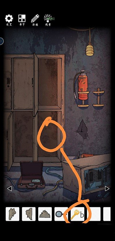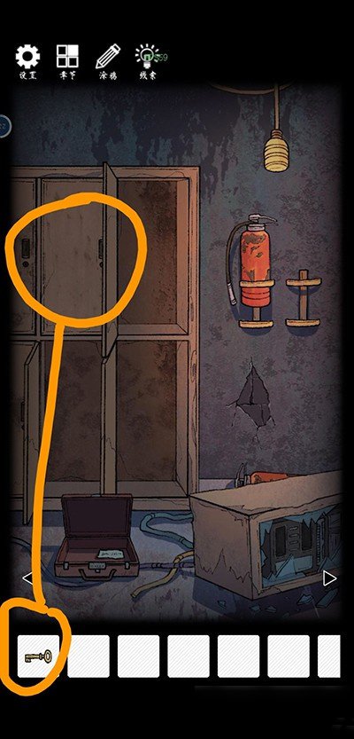 8、右转,用钥匙a开启柜子,获取铁棍。
