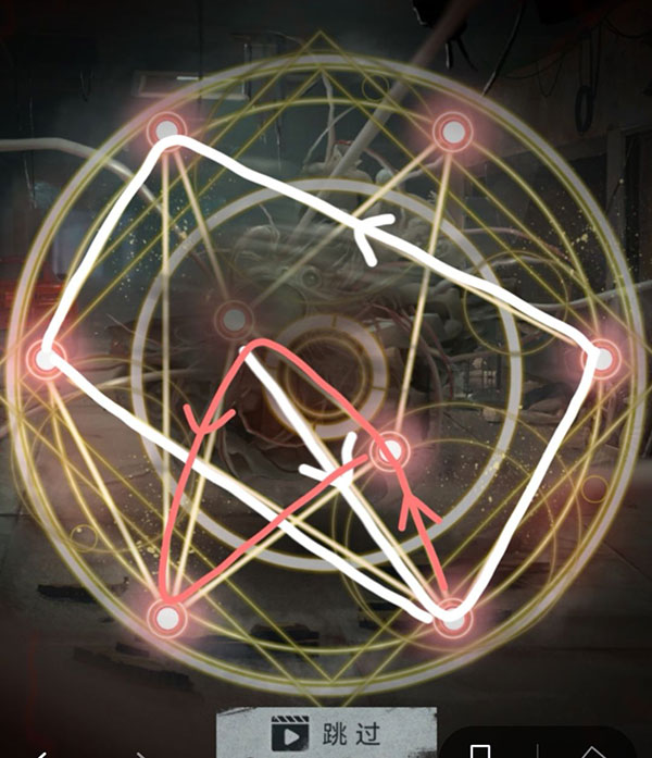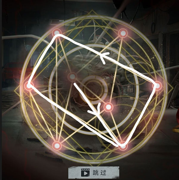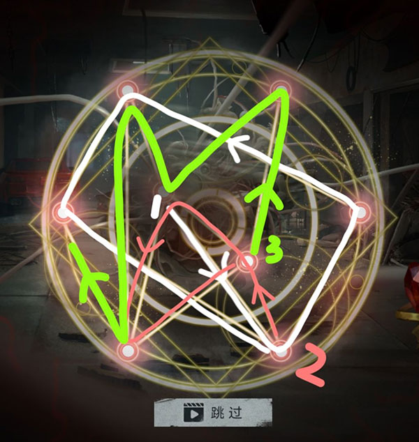 在第五章中,卡洛琳用手杖对波飞天意面(×),需要玩家在短时间内一笔画出魔法阵,共三图,三图时间共享,路径不能重合,对新手玩家来说还挺难的。