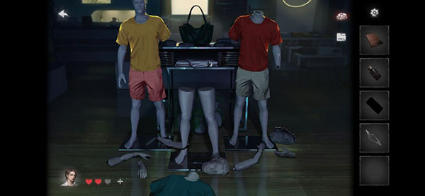8、来到衣服店,用羊角锤打开地下室的门。地下室内有衣架(10个),头(3个)。
