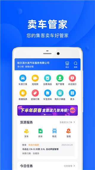 卖车管家app官方版是一款优质营销管理服务工具,主要面向大型和中小型综合汽贸,为其提供找车、物流、垫款、营销集客以及汽车销售管理等一整套服务,带领综合汽贸轻松进入汽车“新零售”时代。卖车管家实时给各位车商解决客户难找,买车难的各种难题,给用户最好的一个辅助功能,让还在头疼的车商能够顺利提高自己的销售额。
