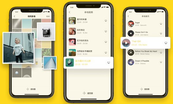 手机内的视频、图片、音乐等一键就能推送到电视上去,十分快捷。