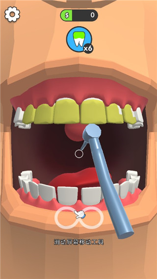 2、我们需要滑动屏幕来移动工具,来为病人去除牙齿上的病菌