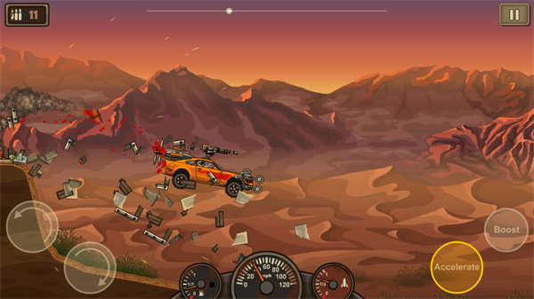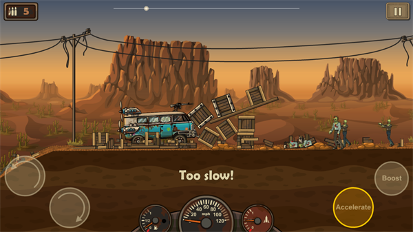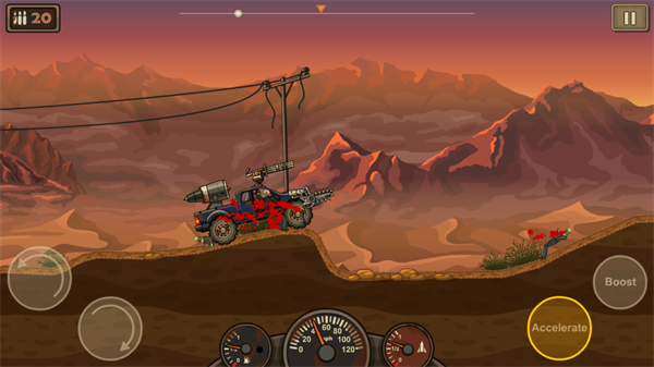 6、你需要使用有限的燃料完成每天的挑战,每次消灭一个僵尸都会得到一定的分数,在关卡中积累的分数越多,获得的奖励也就越多,解锁游戏内容。