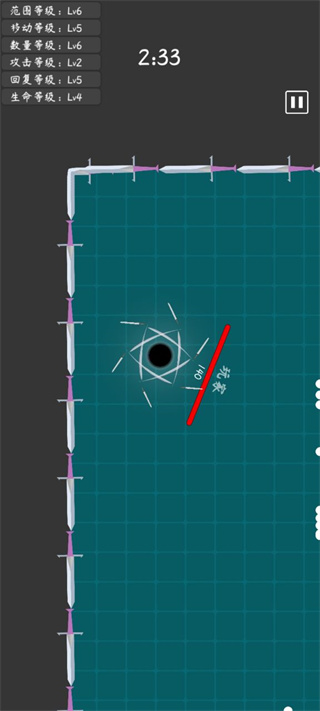 2、将玩家按照刀的数量是否已围成闭合的一圈,分为两级,低级玩家移速少量增加,防御时间无限;高级玩家手长,但随着分数的增长,防御时间逐渐减少(但变化幅度不大),基本维持在4-6秒,在非防御时充能,或者拾取道具(相信你们团队已经完成了道具系统)。同时在高级玩家降级时有补偿,但是要考虑的是最后一点会延长游戏时间。