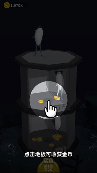 4、要是买鱼时金币不够,那么可以点击地板上的金币进行收集哦;