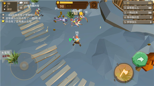 4、游戏的攻击方法很简单,重要的是对走位和攻击方向的控制,因为人的身体本来就小,再加上所以人都在快速移动中,所以想要准确的丢准目标,并不是那么容易的事。