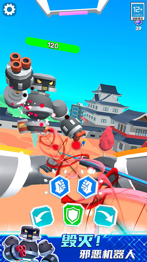 2、攻击到要害,拖动拳头到敌人的头部位置,伤害最大!
