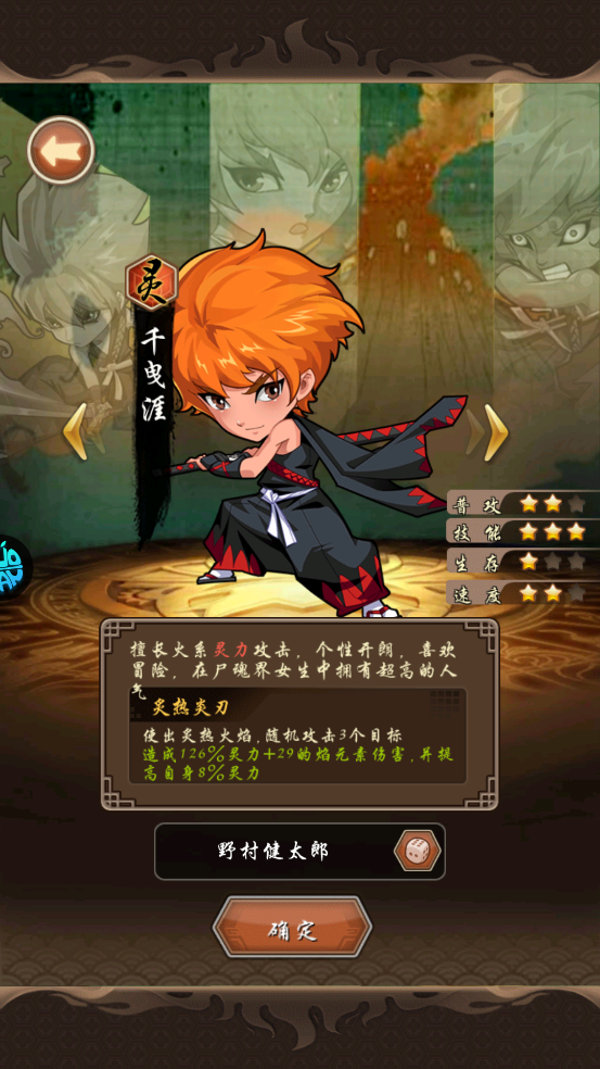 擅长火系灵力攻击,个性开朗,喜欢冒险,在尸魂界女生中拥有超高的人