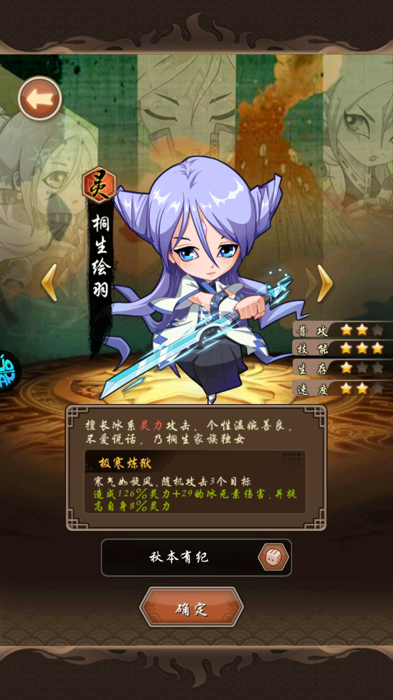 擅长冰系灵力攻击,个性温婉善良不爱说话,乃桐生家族独女