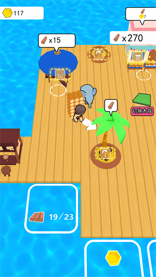 这个游戏叫《我就是海王》,听起来挺有意思的。玩家一开始只有一把斧头和一个木筏,得在海上生存下去。玩法主要是收集资源、扩建木筏、搭建城市啥的。你可以钓鱼、打鲨鱼,还能建仓库、摊位,感觉有点经营城市的那种感觉。