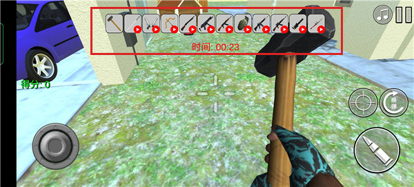 6、选择这些武器破坏房子,破坏的程度越高所得评分越高,奖励更多