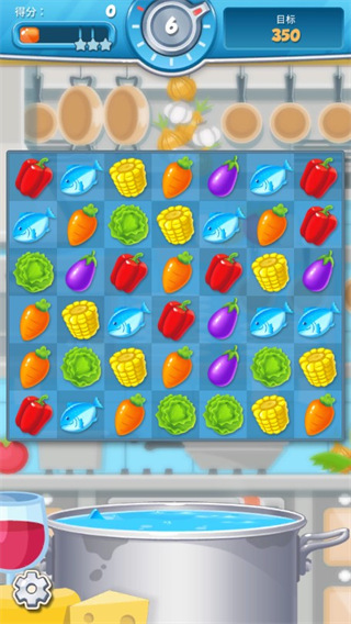 1、玩家们在游戏中要不断地去消除掉那些食材,那些食材的类型不同,我们要注意正确的去将那些食材组合在一起,并且在移动的时候还要注意那些食材的位置,并且拿到更多的得分加成。
