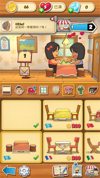 此外,为了迎合一些“收集癖”玩家的胃口,以及增加游戏的粘合度,游戏中还专门加入了经营餐厅的环节,你还可以利用收集到的金币,逐渐打造出一个适合你口味的主题餐厅。无论是中式、意式还是法式,随你喜欢。据说要是有名人光顾的话,还能获得额外奖励哦。