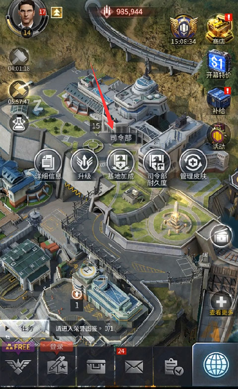 1、一起构建更加强大的基地,请透过资源岛采集Titanium晶石,然后使用采集的晶石升级司令部和基地建筑。