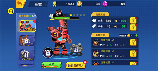 2、在这里你可以查看自己角色的属性以及技能,还可以解锁新的角色;