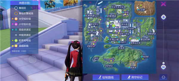 4、进入游戏后根据小地图在合适的位置降落,但是要小心其他玩家的伏击,避免落地成盒