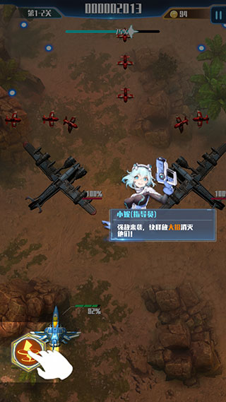 1、按住并拖动屏幕即可控制战机移动,战机会自动发射子弹。