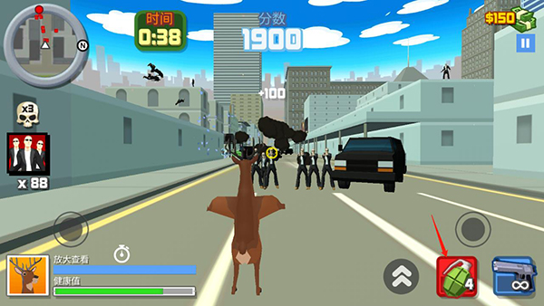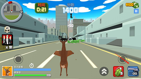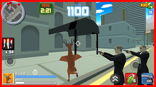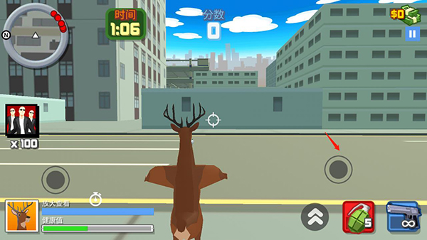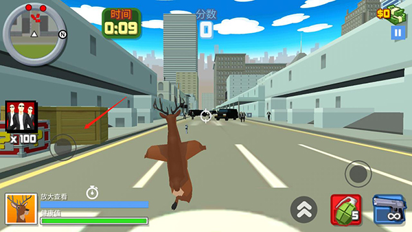 非常疯狂的鹿是一款趣味横生且充满刺激的射击战斗游戏。玩家将操控一头疯狂的鹿,在开放式的城市场景中自由破坏,体验无拘无束的游戏乐趣。游戏玩法简单易上手,玩家可以无条件解锁商店中的各种道具,并完成一系列有趣的破坏任务。