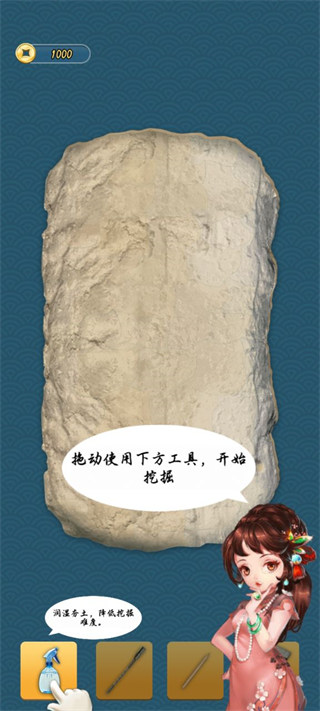 5、挖掘出来后,玩家需要拖动清理文物表层粘土工具,将粘土清理干净;