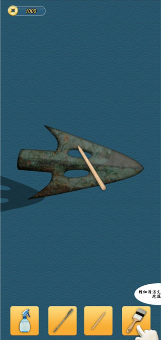 6、清理完成后,玩家还需要拖动精细清洁文物来清理文物;