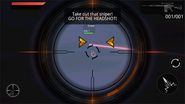 8、点击瞄准镜按钮放大,消灭剩下的敌人;