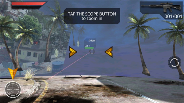 6、点击按钮切换武器和装备你的狙击步枪,点击范围按钮放大;