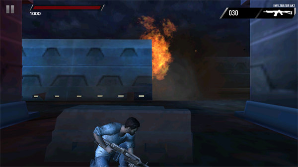 屏幕左侧控制枪械瞄准,只要对准敌人之后,就可以开始射击。右侧可以开火、切换武器,射击时对准敌人开火即可。松开主角人物,就会自动的躲入掩体里。在敌人射击的空闲时间,我们一定要快速的离开掩体射击,这样才可以快速的击杀敌人。