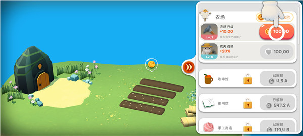 5、当获得的金币足够时,你可以对你的农场进行升级,增加金币的生产;