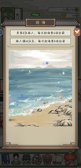 游戏中,玩家可以通过文字选择和决策系统影响家族发展,解锁丰富的事件与任务,探索不同的家族路线。家族势力的增长需要通过各种活动实现,比如赶山、成人礼、投壶、善举等,每一步都需要仔细规划。