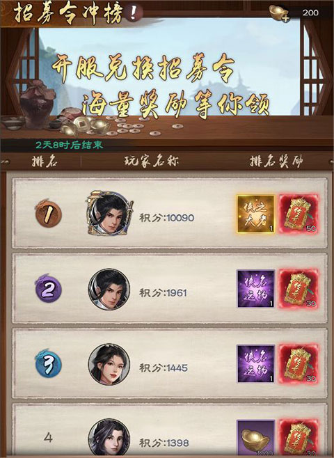 9、招募活动可以招募一波宗师牌子,虽然金手指有时也很让人无奈,但还是最稳妥的。