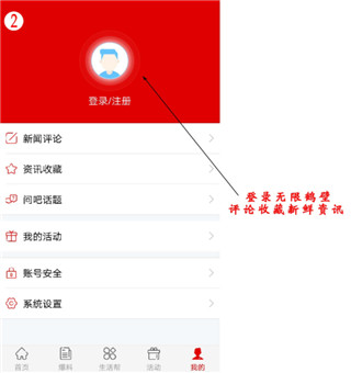 1、安装后打开软件,首先登录账号,可以进行评论收藏新鲜资讯。